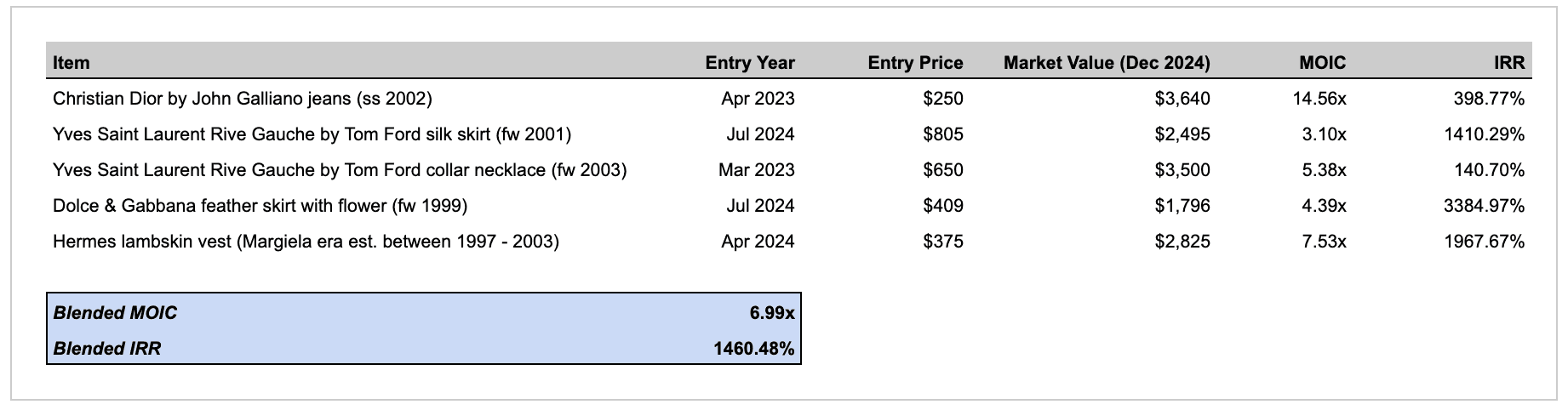 I'm known for internet arb; a legitimate addiction to finding underpriced items and either flipping them or keeping them as part of a portfolio of collectible assets. Most purchases are long-term holds, but I cashed a few exits recently. A waffle interior Chrome Hearts sweatshirt purchased from a t-shirt dealer in LA for $140 in 2019 sold for $700 on TheRealReal last week. I made $578 post commission, representing 37% IRR. In other categories like furniture, I recently sold a George Nelson table on Ebay, 53% IRR. I originally found it in 2019 at a furniture warehouse in Chicago.